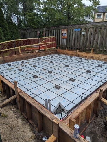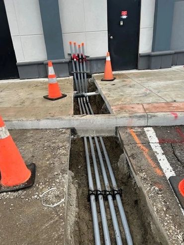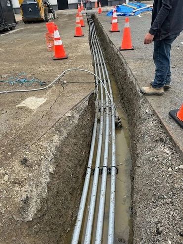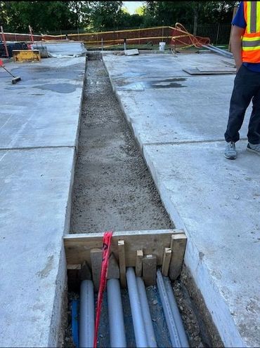 Our commercial projects include utility trenching, generator pad installation, emergency response excavation, EV charging station installation, site restores, remediation, and more! We also work with homeowners on swim spa pads, new garage slabs, walkways, flagstone, retaining walls, and beyond.